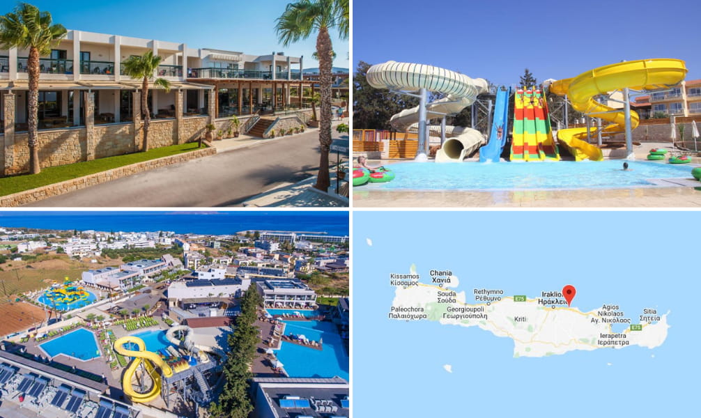 Auch auf der Insel Kreta gibt es tolle Hotels mit Aquaparks. Im 5 Sterne Hotel Fodele Beach wird dir und deiner Familie neben modernem Ambiente und Entspannungsoasen für Erwachsene auch spektakuläre Wasserrutschen für die ganze Familie geboten.