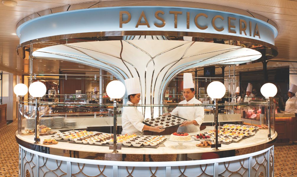 Unser erster Seetag stand ganz im Zeichen des Entdeckens. Frühaufsteher haben beim Frühstück im „La Sagra dei Sapori“ noch eine freie Platzwahl und entspanntem Buffetbetrieb. Besonders positiv: Das Essen wird hier von der Crew auf den Teller gereicht – eine charmante Maßnahme gegen Lebensmittelverschwendung.