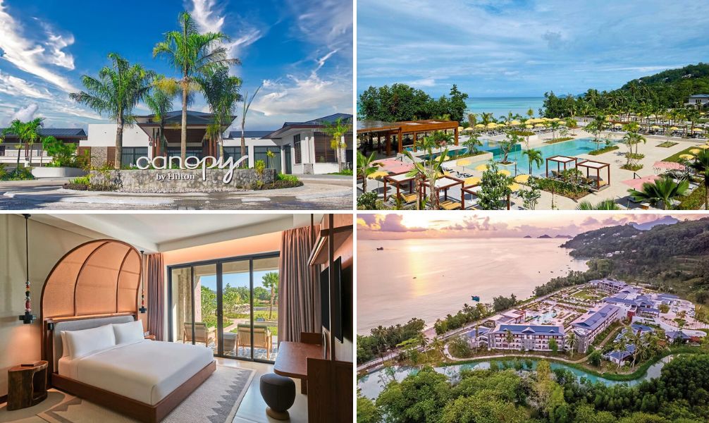 Das Canopy by Hilton Seychelles liegt in einer atemberaubenden Lage an der Westküste der Insel Mahé, nur wenige Minuten vom weltberühmten Strand Anse Royale entfernt. Mit seiner modernen Architektur und eleganten Ausstattung bietet das Hotel sowohl für Familien als auch Paare den perfekten Ort für einen entspannten Urlaub. Dank seiner Lage inmitten tropischer Vegetation genießen Gäste von vielen Zimmern einen herrlichen Blick auf das türkisfarbene Meer und die üppige Natur der Insel.