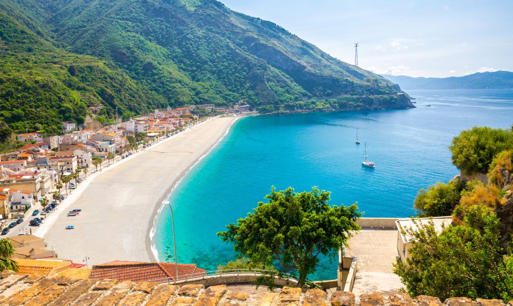 Scilla ist ein zauberhaftes Städtchen im Süden Kalabriens und gilt als eines der schönsten entlang der Costa Viola. Es liegt direkt an der Meerenge von Messina und bietet einen spektakulären Blick auf das nahegelegene Sizilien. Der 600 Meter lange und 30 Meter breite Strand im Stadtteil Marina Grande ist ein besonderes Highlight und bietet einen atemberaubenden Blick auf das Wahrzeichen der Stadt, das Castello Ruffo. Der Strand ist eine Mischung aus feinem Kies und grobem Sand. Probiere bei deinem Aufenthalt auch unbedingt ein lokales Fischgericht im Fischerviertel Chianalea.