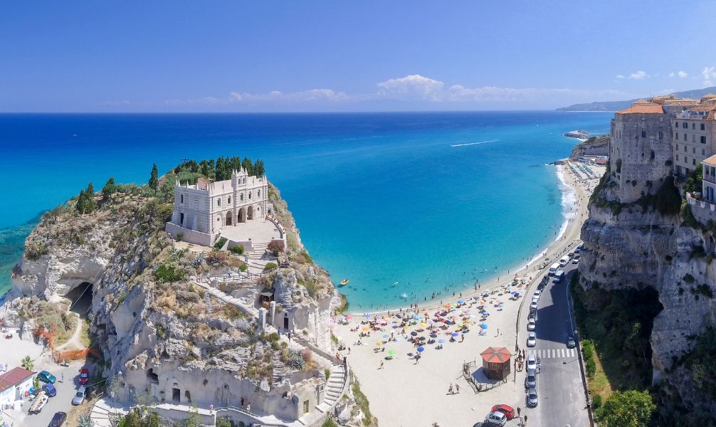 Ein Ort in Kalabrien, der besonders hervorsticht, ist Tropea. Die kleine Küstenstadt bietet alles, was das Urlauberherz begehrt. Hier findest du nicht nur eine malerische Altstadt und die berühmte Kathedrale Santa Maria dell'Isola, sondern auch einen wunderschönen Strand und glasklares Meer. Tropea ist außerdem für die atemberaubende Lage auf einem imposanten Felsen bekannt. Die Häuser, die bis zur senkrecht abfallenden Felswand gebaut wurden, bieten einen spektakulären Blick auf das offene Meer und den breiten Sandstrand. Der Hausstrand ist über steile Stiegen von der Altstadt zu erreichen. Die Kombination aus Stadt und Strand macht Tropea zu einem beliebten Urlaubsziel. Hier lassen sich Kultur und Natur perfekt vereinen. Tropea ist übrigens auch der perfekte Ausgangspunkt für Ausflüge in die Umgebung.