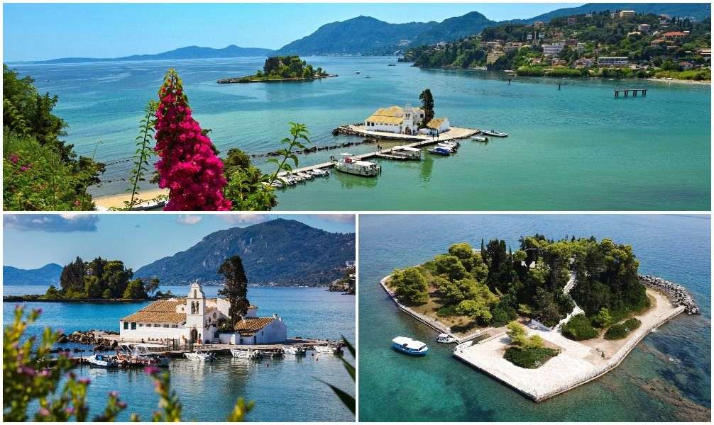 Vom Aussichtspunkt Kanoni, der an der Spitze der Halbinsel Analipsi im Osten liegt, bietet sich dem Reisenden ein herrlicher Ausblick und zugleich eines der beliebtesten Fotomotive Korfus. Die Klosterinsel Vlacherna mit ihrem weißen Kirchengebäude liegt im Meer und kann von der Küste über einen Steg betreten werden. Das nahe gelegene Inselchen Pontikonisi, welches auch „Mäuseinsel“ genannt wird, besticht mit ursprünglicher Natur und einer byzantinischen Kapelle.