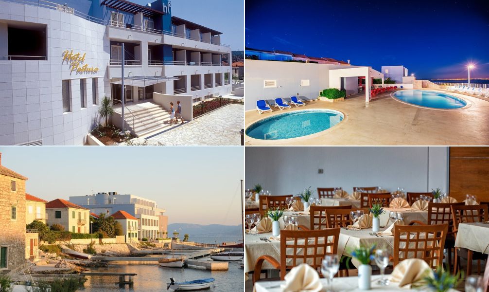 Das Hotel Pastura befindet sich in Postira auf der Insel Brac. Es liegt direkt am felsigen Strand an der Promenade und nicht weit vom Stadtzentrum entfernt. Des Weiteren gibt es ein Restaurant mit À-la-carte-Angebot, eine Aperitif Bar und ein Café. Abkühlung findet man im Außenpool mit Süßwasser für Erwachsene und Kinder. Zum Angebot gehören außerdem ein Fitnessraum, eine Sauna, ein Whirlpool, ein Massageservice und ein Schönheitssalon.