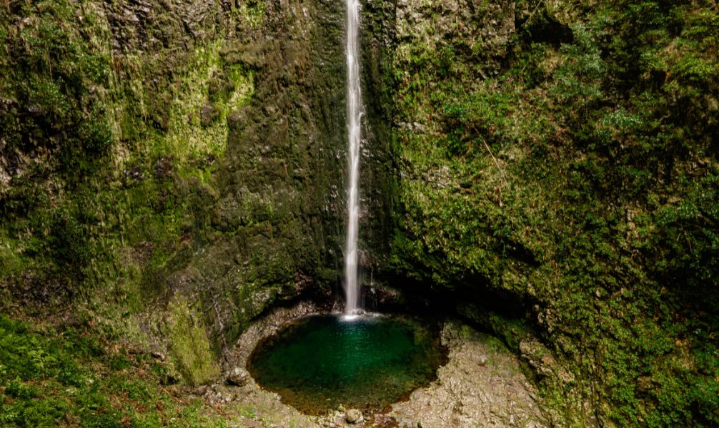 Die Tour führt durch einen mystischen Nadelbaumwald, der von großen Hortensien gesäumt ist. Der Wanderweg verläuft entlang der allgegenwärtigen Levadas und durch eine immergrüne Landschaft aus Farnen, Moosen, Baumheiden und uralten Lorbeerbäumen. Immer wieder finden sich wunderschöne Aussichtspunkte mit Blick auf Santana und den Pico Ruivo. Das Ziel der Wanderung ist der mit Farnen bewachsene Kessel, der "Caldeirão Verde", mit einem kleinen See. Das Wasser stürzt über einen 100 Meter hohen Wasserfall von den steilen Wänden hinab.