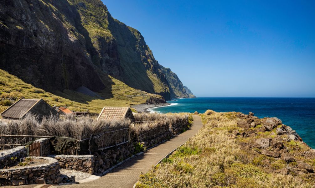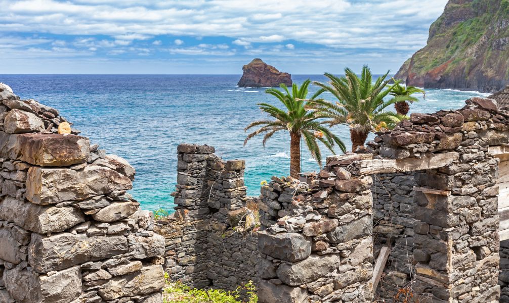 Die Küstenwanderung in Sao Jorge entlang der Steilküste von Madeira bis zum Ponta de Sao Jorge bietet eine atemberaubende Aussicht auf das Meer und gigantische, meterhohe Wellen, die brechen. Der Ort war früher eine Anlegestation für Angler:innen und noch heute kann man hier vereinzelt Fischer:innen antreffen. Auf dem Weg kommt man auch an den Ruinen in Calhau de Sao Jorge vorbei, die Teil einer alten Zuckerrohrmühle waren. Die letzten Hinweise darauf befinden sich aber nur noch am aus Stein gebauten Eingangsportal, das einen direkten Blick auf das Meer eröffnet.