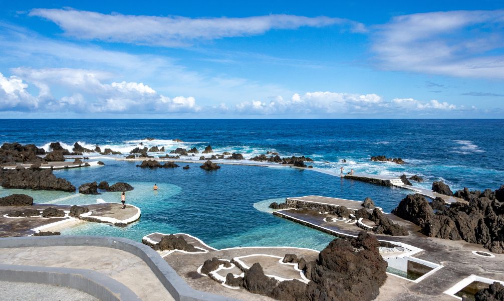 Auf Madeira gibt es viele natürliche Pools, in denen man baden kann, darunter die berühmtenPorto Moniz Swimming-Pools, für die man einen Eintritt von ca. 1,50 € zahlen muss. Dieser enthält den Zugang zu sanitären Einrichtungen, Umkleiden und ein Schließfach. Die Pools sind sehr schön, aber auch sehr voll. Neben den Porto Moniz Natural Swimming-Pools liegen die Piscinas Naturais Velhas, ebenfalls natürliche Pools vulkanischen Ursprungs. Der Eintritt ist dort kostenlos.