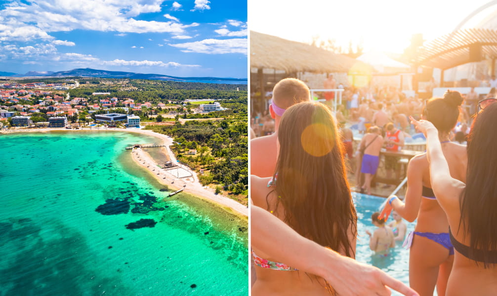 Der Strand in der Nähe der Stadt Novalja auf der kroatischen Insel Pag hat sich zu einem der beliebtesten Party-Hotspots in Europa entwickelt. Berühmte Clubs wie das Aquarius, Noa und Papaya ziehen jedes Jahr tausende von Partygästen an. Mit bekannten DJs und Live-Acts aus der ganzen Welt kannst du bei legendären Strandpartys unter freiem Himmel feiern. Wenn du mit dem Auto anreisen, die Nacht durchfeiern und tagsüber entspannen möchtest, dann ist Zrce definitiv einen Besuch wert