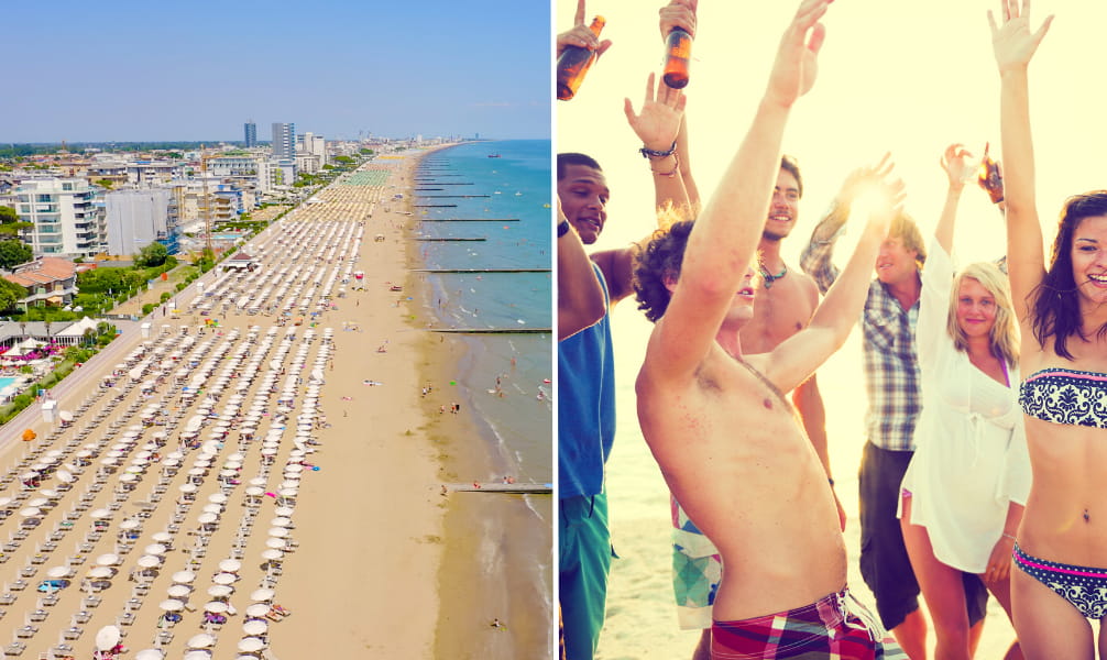 Jesolo bietet dir alles, was du für den ultimativen Partyurlaub brauchst: Eine perfekte Lage zur Eigenanreise mit dem Auto, einen feinen langen Sandstrand mit Beachbars, die längste Flaniermeile Europas und viele verschiedene Discos & Clubs. Falls du es an einem Tag mal ruhiger angehen möchtest, liegt die Stadt Venedig nur einen kurzen Autotrip entfernt. Das pulsierende Nightlife erwartet dich in der berühmten Discoteca Muretto, im Vanilla Club und im Capannina Beach.
