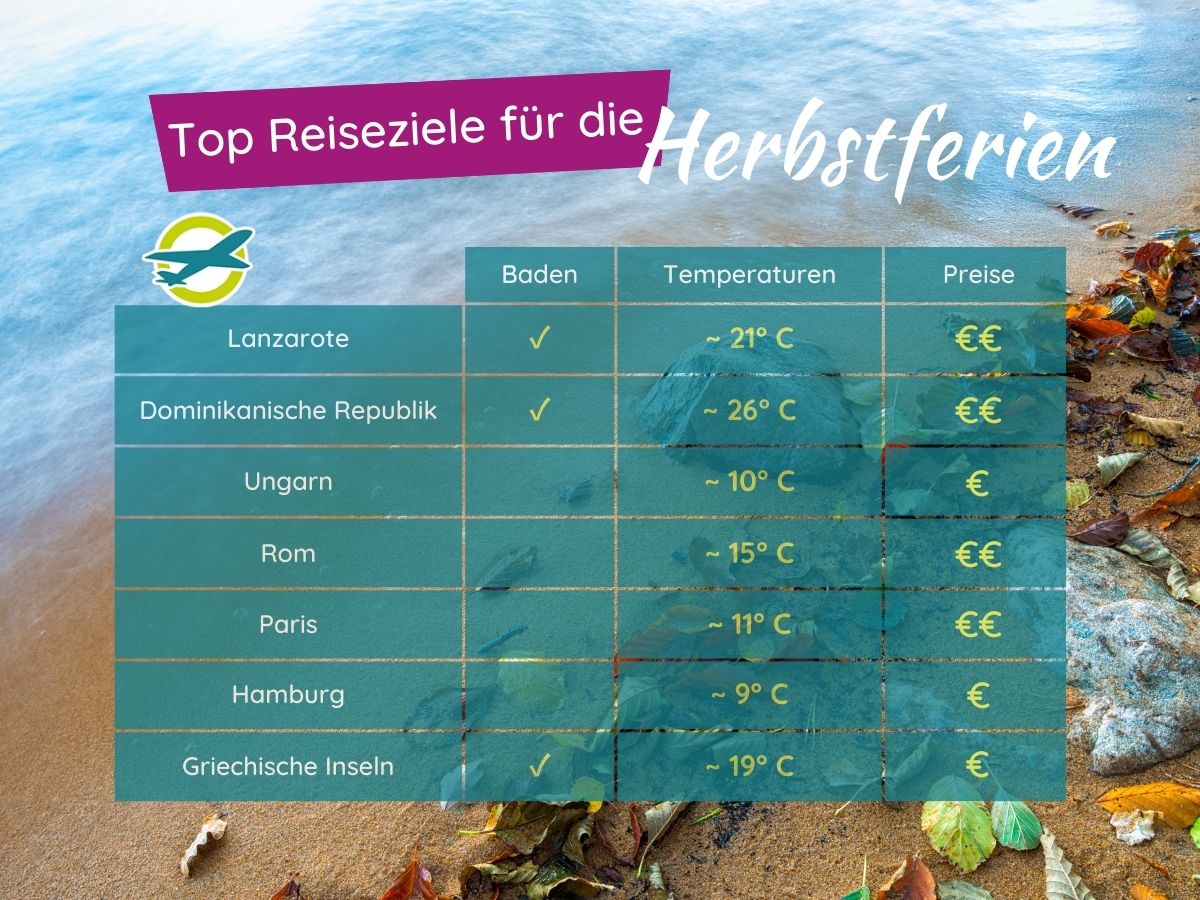 Da die Herbstferien in der Nebensaison liegen und offiziell noch in die Regenzeit gezählt werden, stehen eure Chancen auf Last Minute-Schnäppchen hier besonders gut: Checkt am Besten kurzfristig das Wetter vor Ort und behaltet unsere Angebote im Auge, um euch eure Traumreise zu sichern!