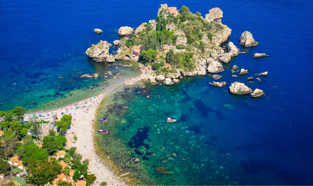 Die Isola Bella ist eine kleine Insel bei Taormina, die über eine kleine Landzunge erreichbar ist. Wegen seiner besonderen Lage und der üppigen Natur wird der Strand auch als „Perle des Mittelmeeres“ bezeichnet. Der felsige Meeresboden lässt das Wasser in unterschiedlichen Türkistönen strahlen. Erreichbar ist der Strand, der von hohen Klippen eingerahmt ist, über eine Treppe. Hier kannst du ausgezeichnet Schnorcheln oder einfach nur am Strand entspannen und den Blick auf den Ätna genießen. Aber Vorsicht: Je nach Gezeiten verschwindet der Sandstreifen.
