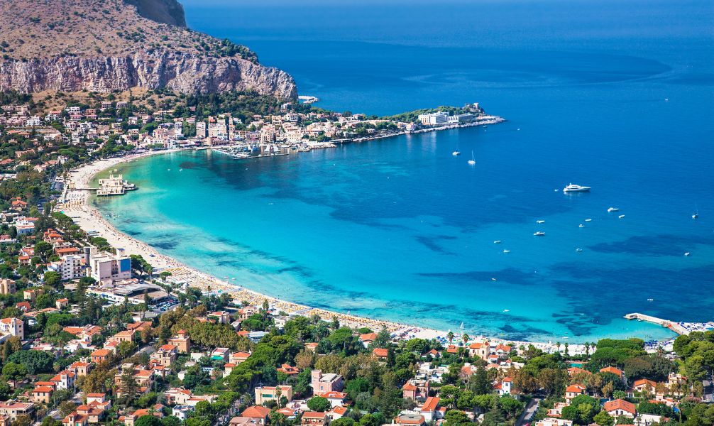 Etwa 20 Minuten außerhalb der Hauptstadt Palermo trafen sich früher die Schönen und Reichen in der Bucht von Mondello. Hier findest du azurblaues Meer und feinen, weißen Sand, eingerahmt von den Bergen Monte Gallo und Monte Pellegrino. Gleich hinter dem 1,5 Kilometer langen Strand liegt eine Promenade mit Cafés und Restaurants. Außerdem gibt es vor Ort ein umfangreiches Angebot an Wassersportmöglichkeiten, wie Windsurfen.