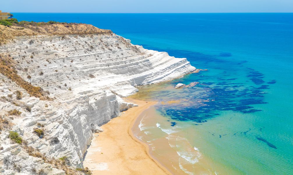 Die Scala dei Turchi ist eine riesige weiße Kalksteinformation an der Südwestküste Siziliens. Das beeindruckende Naturwunder bietet einen tollen Kontrast zum azurblauen Meer. Die Klippen sind von kleinen Stränden umgeben, die sich ideal zum Baden eignen. Vor Ort gibt es auch zwei Kioske, die Besucher:innen mit Getränken und Snacks versorgen.