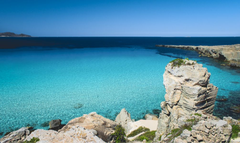 Das Meer ist zugegebenermaßen in ganz Sizilien wunderschön. Wenn du glaubst, es geht nicht mehr klarer und türkiser, dann hast du die Traumbucht der Cala Rossa noch nicht besucht. Der Sandstreifen an der Küste ist zwar relativ schmal, die Kulisse aber atemberaubend. Einen kleinen Haken gibt es allerdings: der Strand befindet sich auf der Ägadischen Insel Favignana im Westen der Provinz Trapani und ist nur mit dem Boot bzw. der Fährverbindung erreichbar.