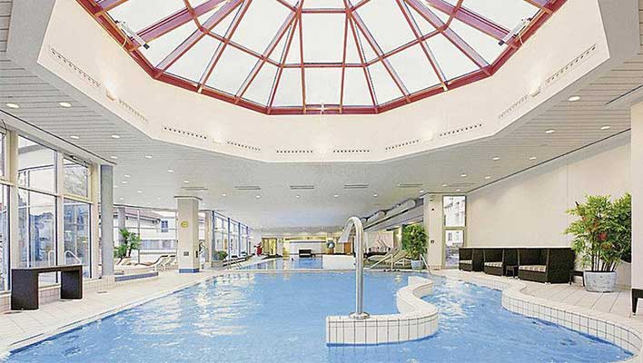 Direkt an Europas größtem Kurpark Bad Wildungen-Reinhardshausen gelegen, ermöglicht dir das Göbel’s Hotel AquaVita einen traumhaften, vitalen Aufenthalt voller Entspannung und Genuss. Als AktivurlauberIn erfreust du dich an einem breiten Sportangebot im angeschlossenen Gesundheitscenter. Um neue Kraft und Energie zu tanken ist der Zutritt zur QuellenTherme bereits inkludiert und sorgt mit Massagen, Ganzkörperanwendungen und wohltuenden Behandlungen für dein körperliches und geistiges Wohl. Auf 400m2 Wasserfläche verteilt auf drei Pools und einen Whirlpool kommst du zu deiner verdienten Auszeit bei beruhigender Atmosphäre. Das Hotel wurde außerdem als diabetikerfreundlich ausgezeichnet und versorgt dich mit feinster, gesundheitsbewusster Kulinarik mit Fokus auf Frische und Qualität. Das Göbel’s Hotel Aquavita würde ich dir empfehlen, wenn du nach einem Gesundheitsurlaub Ausschau hältst und die malerische Natur bei sportlichen Aktivitäten genießen möchtest.
