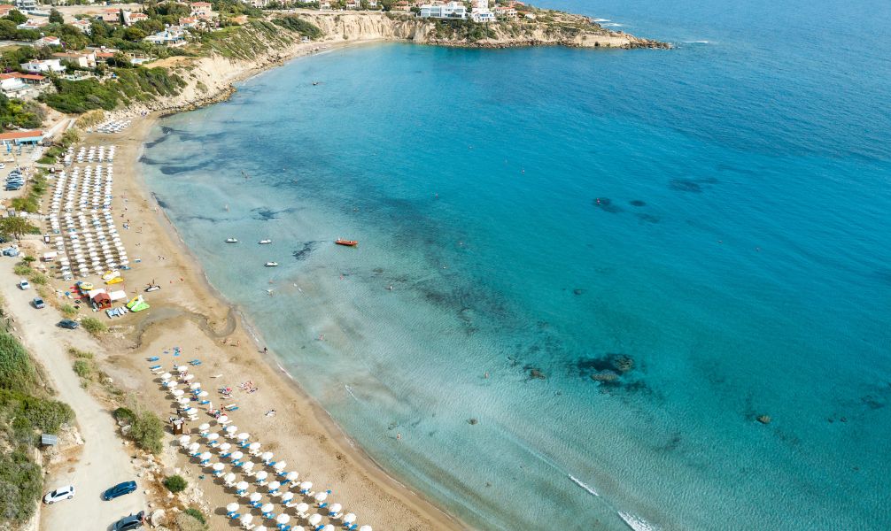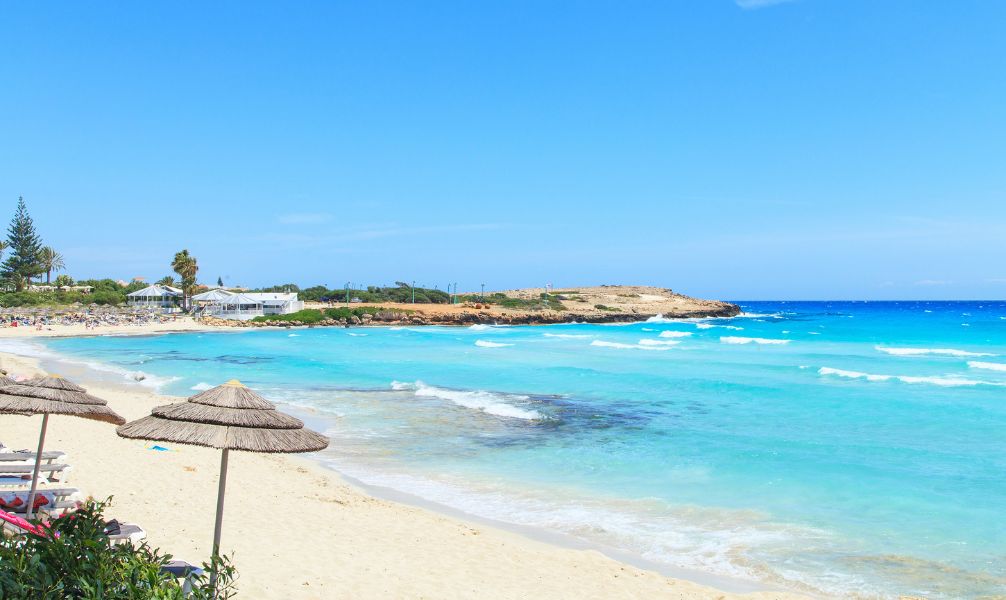 Makronissos Beach ist zweifelsohne einer der besten Strände in Ayia Napa. Kein Wunder, da die kleine Bucht mit weißem, feinem Sand, kristallklarem Wasser in verschiedenen Blautönen, einem großzügigen Badbereich, hervorragendem Wassersportangebot und mehreren Strandrestaurants begeistert. Wem es zwischen den vielen Liegen zu eng wird, der findet auf dem Steinplateau und in den Dünen am Rande der Bucht mehr Ruhe und Platz.