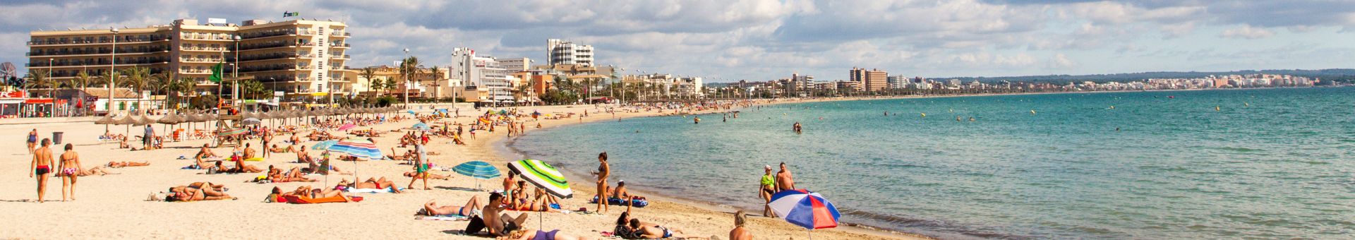 Der Strand Playa de Palma befindet sich in der Nähe der Hauptstadt Palma de Mallorca und ist daher bei zahlreichen Urlaubern beliebt.